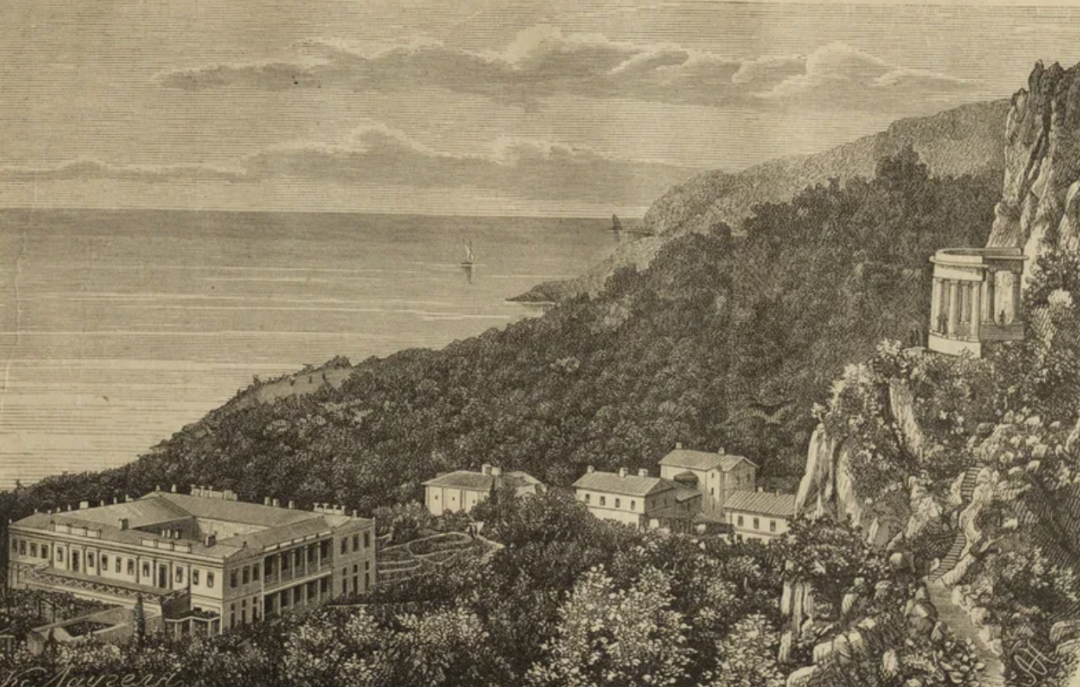 На следующий день после бала во дворце у Воронцова, ставшего кульминацией программы, Николай уехал в действующую армию на Кавказ, оставив императрицу делать распоряжения насчет приобретенного имения. Пробыв в Крыму месяц и возвратившись в Петербург, она немедленно занялась проектом дворца для Южного берега. По словам дочери, великой княгини Ольги Николаевны, императрица «зачитывалась “Ифигенией” Гете и написала в Берлин известному архитектору Шинкелю, прося его начертить ей план дворца в греческом вкусе».